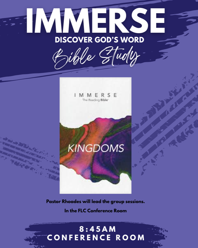 Pastor Rhoades will be leading the Immerse Bible Study on Sundays at 8:45am in the Conference Room.