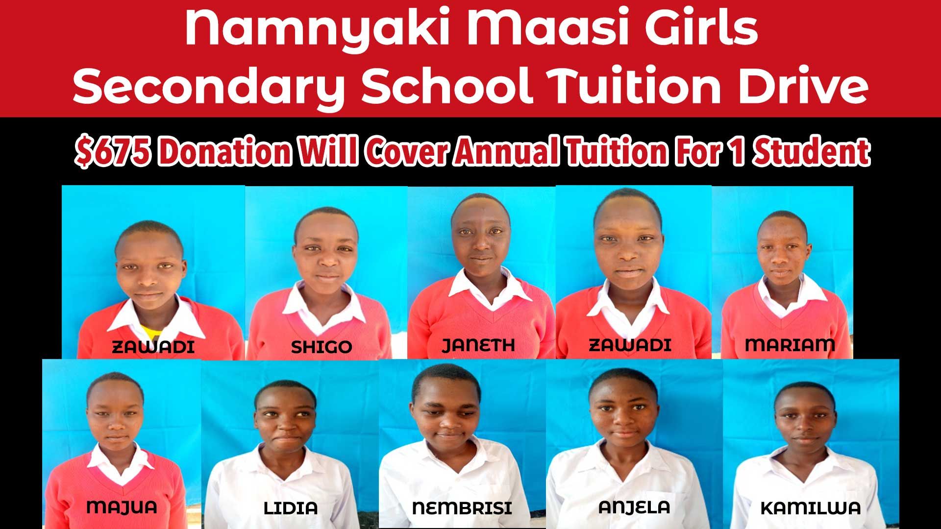Help support our students at Nanyaki Secondary School with tuition costs! A donation of $675 will cover the entire year of tuition for one student! Thank you!